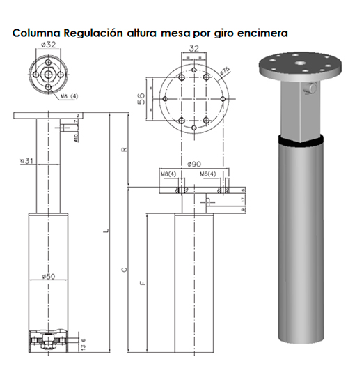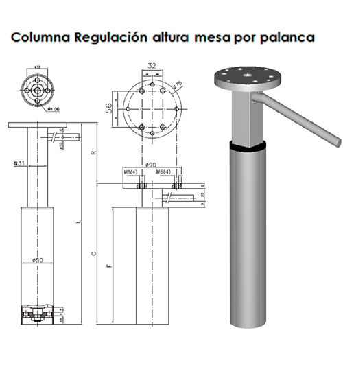 El sistema de activación de esta columna ya viene integrado en la propia columna, sólo queda montarle la encimera en la brida de la parte superior y la base.